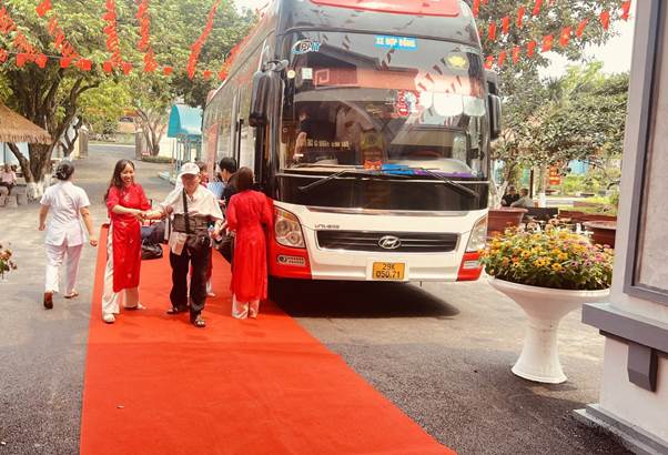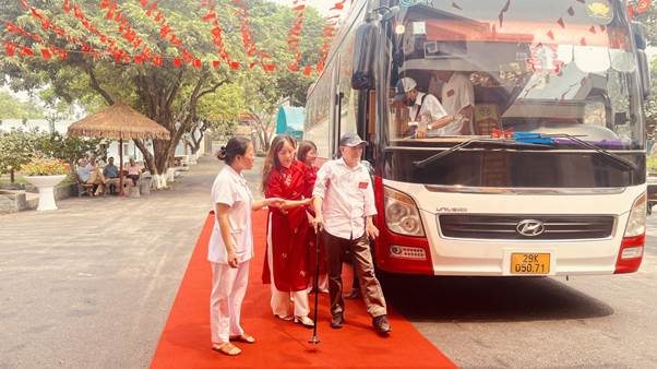 Công tác đón tiếp NCC được Trung tâm tổ chức chu đáo, trang trọng. Tại mỗi điểm đón và trên mỗi xe đều có nhân viên y tế và các đồng chí Công tác xã hội viên hoặc nhân viên công tác xã hội đi cùng để chăm sóc, hỗ trợ các cụ trong suốt hành trình.