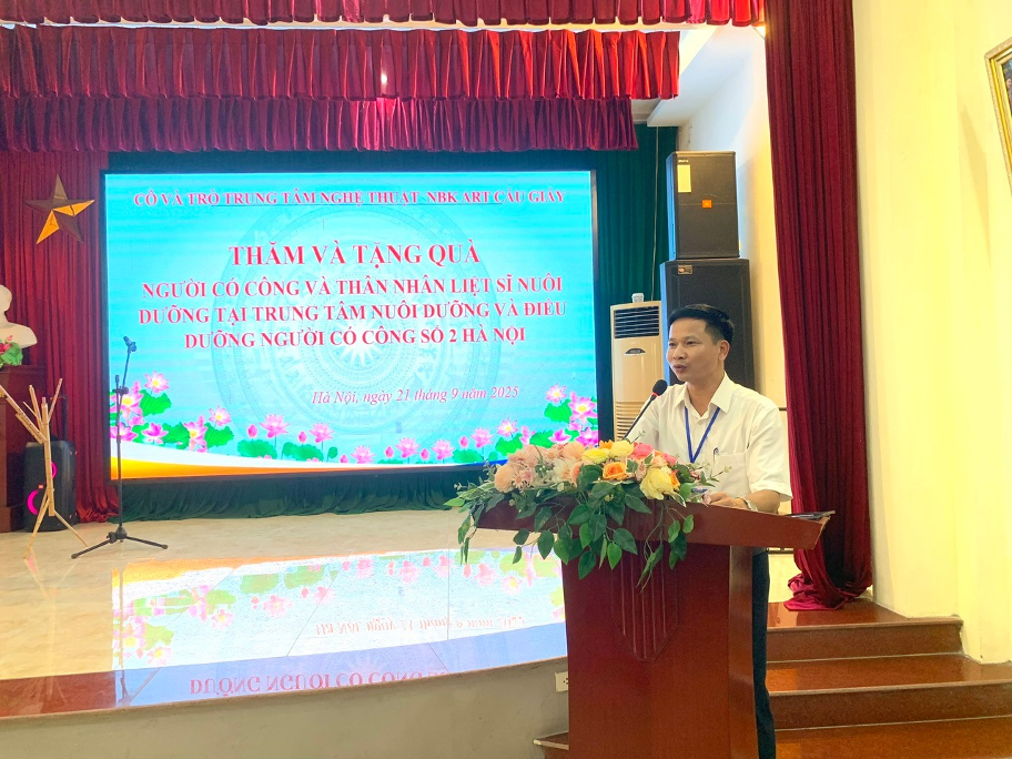 Với tấm lòng biết ơn sâu sắc đến các bậc tiền nhân đã hy sinh vì độc lập, tự do của Tổ quốc, vì cuộc sống hòa bình, hạnh phúc của nhân dân. Nhân dịp tết Trung thu, sáng ngày 22/9/2025, Trung tâm nuôi dưỡng và điều dưỡng người có công số 2 Hà Nội (Trung tâm) đã được tiếp đón cô và trò Trung tâm nghệ thuật NBK ART đến thăm hỏi và tặng quà, tri ân người có công nuôi dưỡng tại Trung tâm.